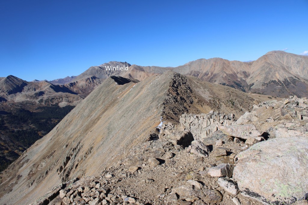 13253, 13,258, 13,251, Sheep Rock Mountain – 13,261, West Virginia Peak – 13,152, Virginia Peak – 13,094, Winfield Peak – 13,085