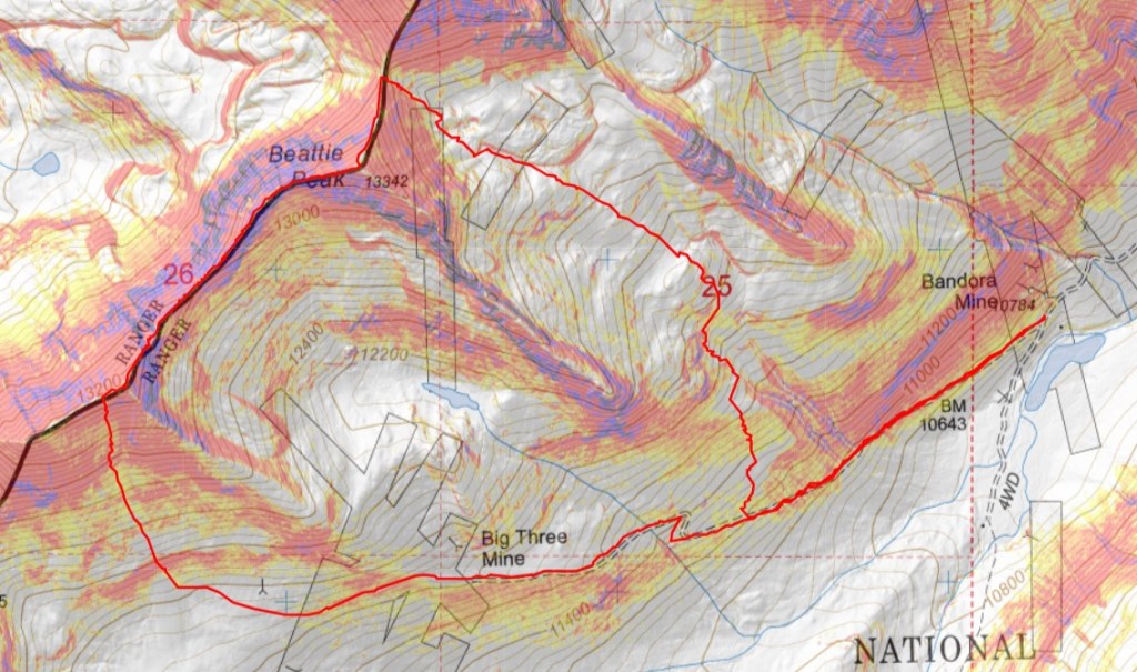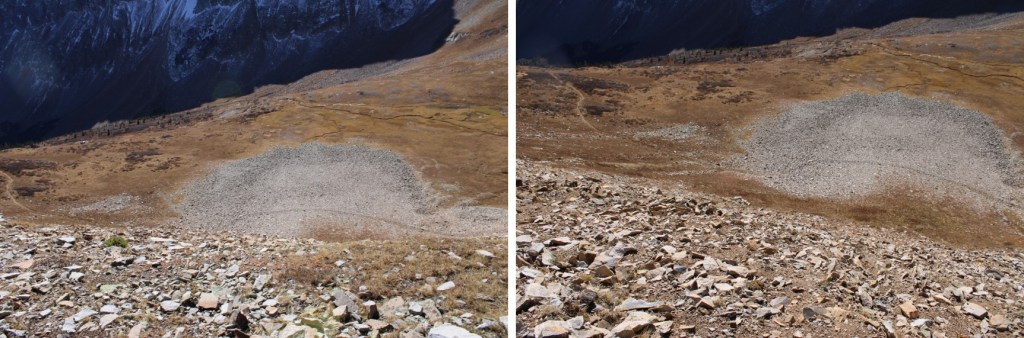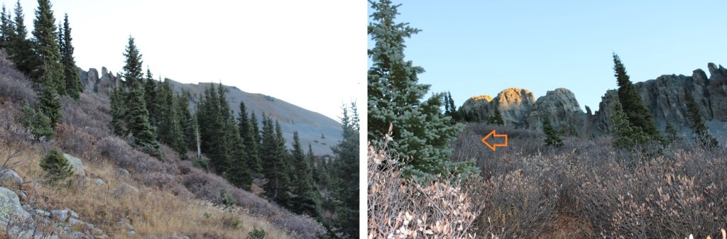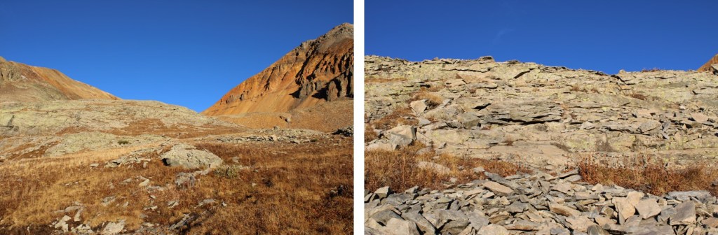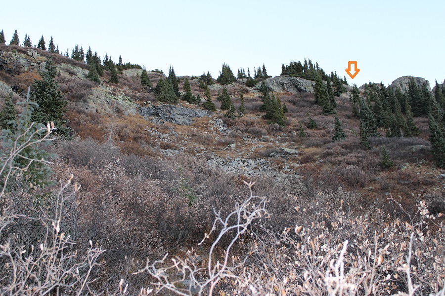 At around 11160’ of elevation I left the trail, and turned right.  If you get to the Big Three Mine you’ve gone too far.  I placed a cairn here, and headed north.