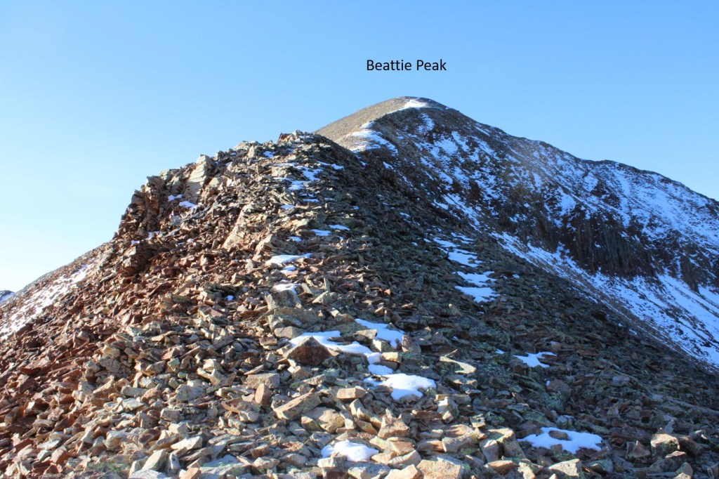 Once at the saddle, I turned left and followed the class 2 ridge to Beattie Peak