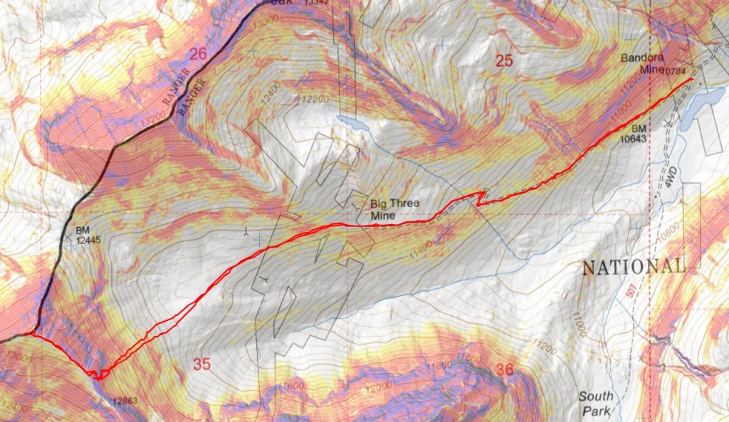 Back on the trail, I followed it northeast back to the Bandora Mine