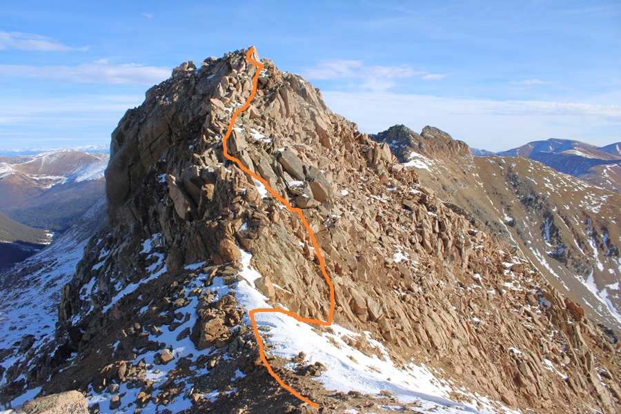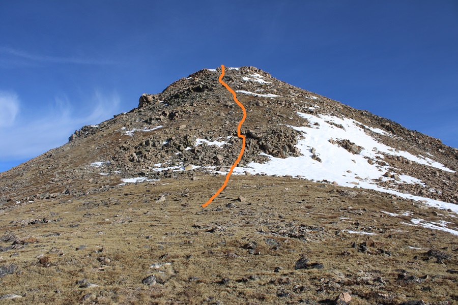 Now the fun begins. It’s class 2 to the top of this ridge. There are a few cairns, but it’s basically choose your own adventure. I went straight up. It’s steeper than it looks, so get a good view before you ascend. This is the route I took.