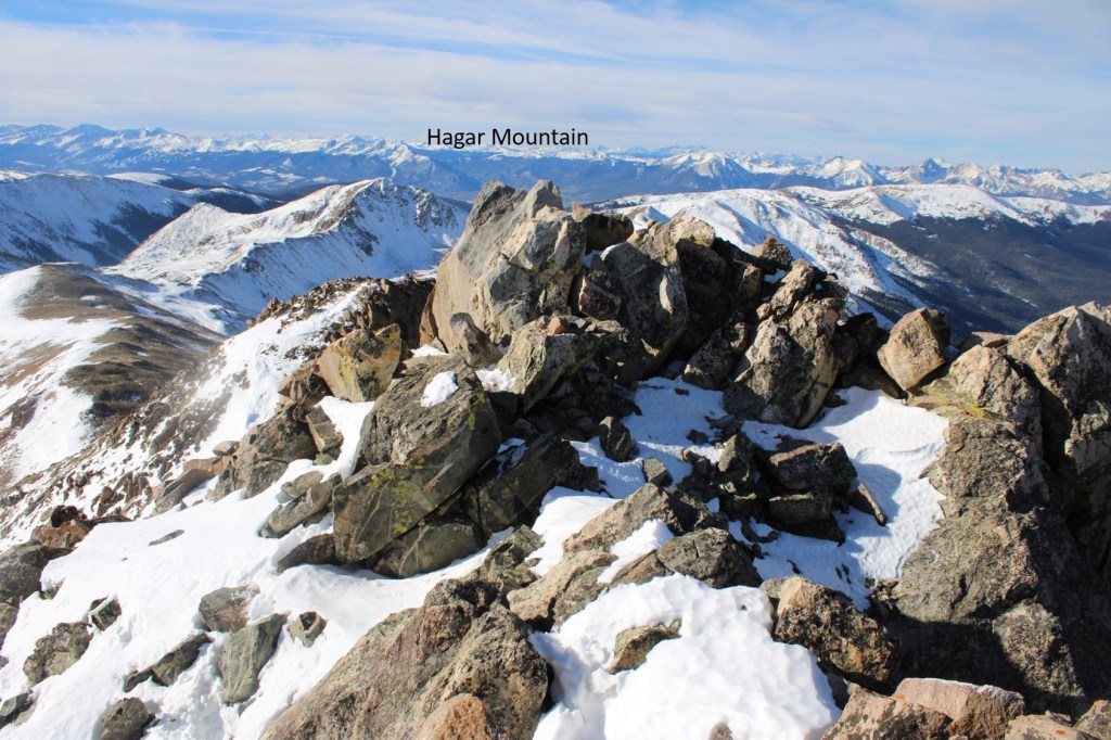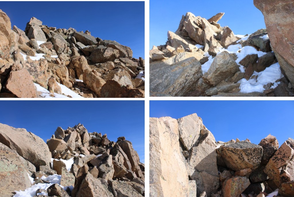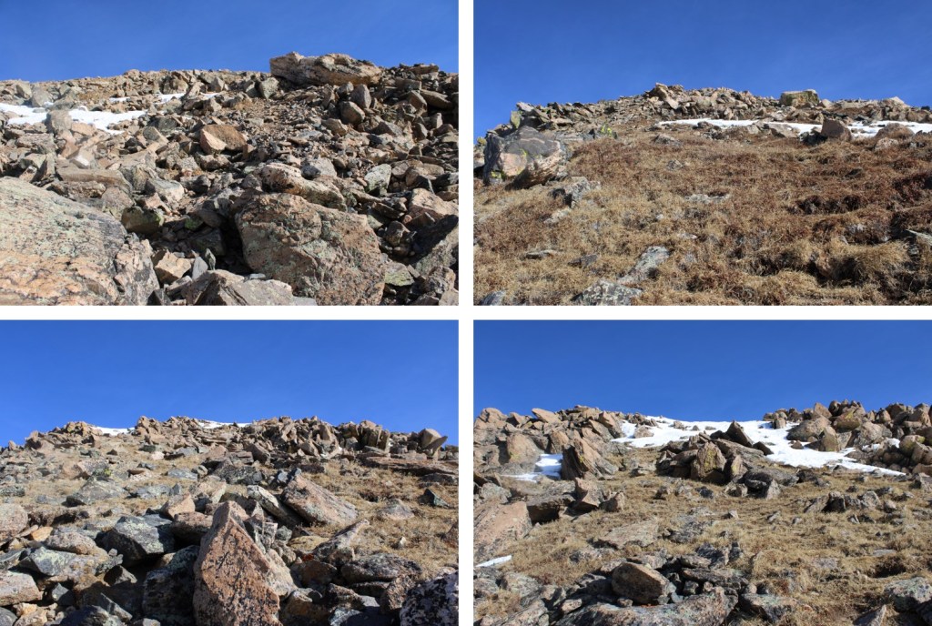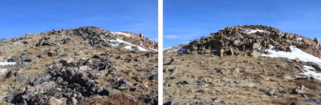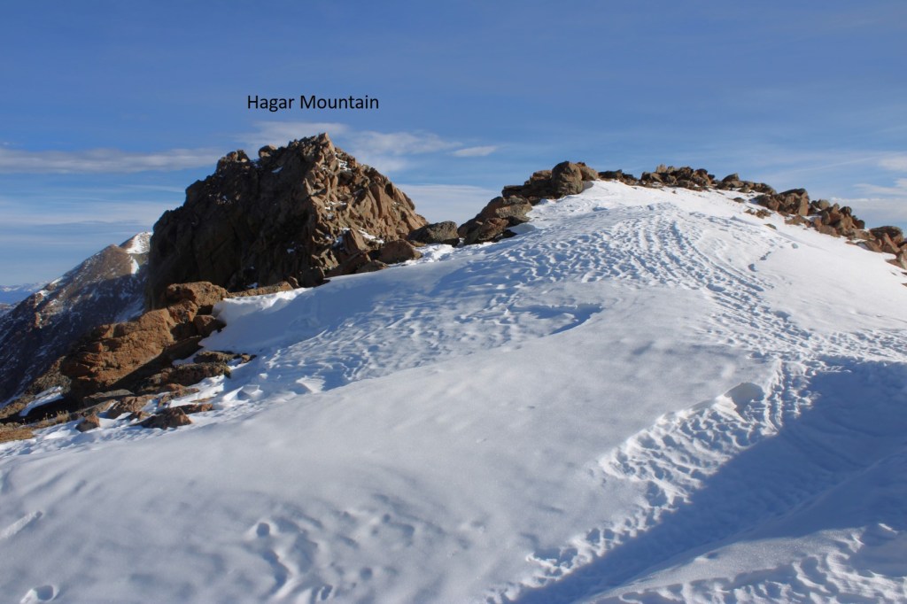 I trekked back over to the first block, and found a summit register, so I’m assuming the first block is the true summit. Now to head back. I retraced my steps, aiming for the Golden Bear/Hagar saddle.