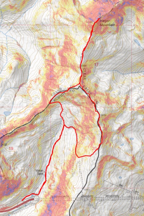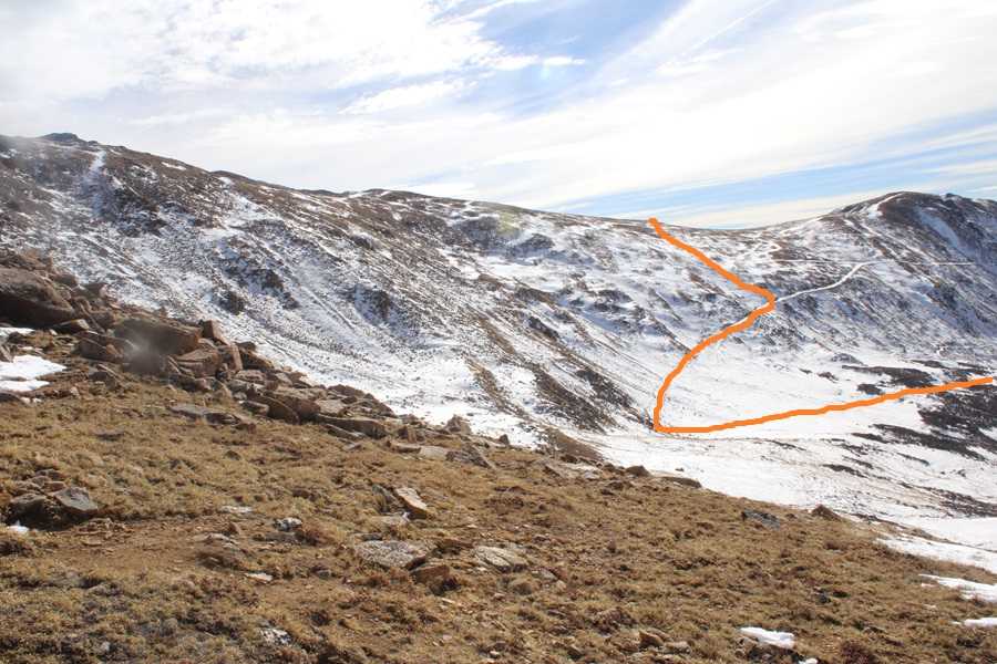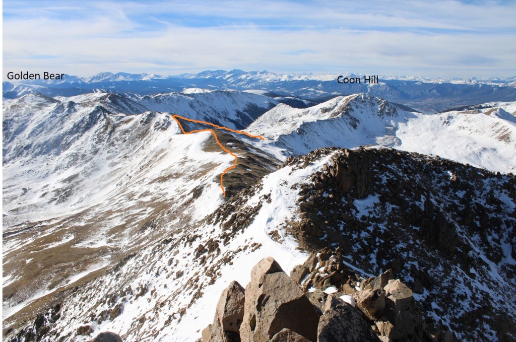 Here’s the overall route I took back to the basin, aiming for the Golden Bear / Coon Hill saddle