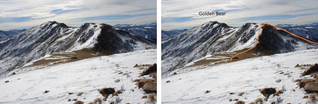 I gained the ridge, and followed it north to the summit of Golden Bear. This was all class 2