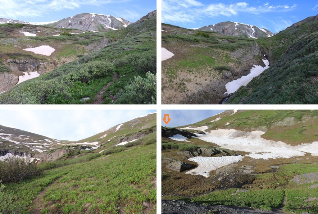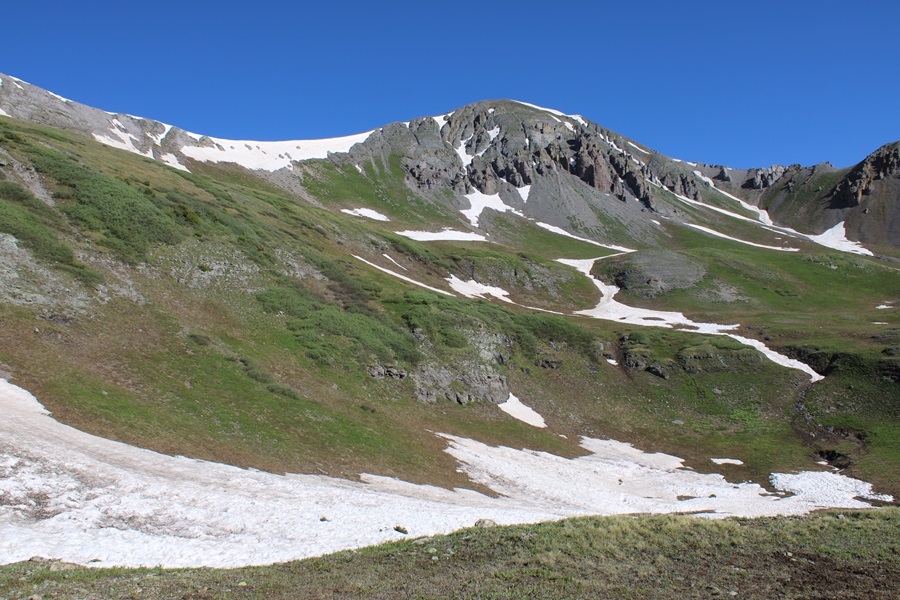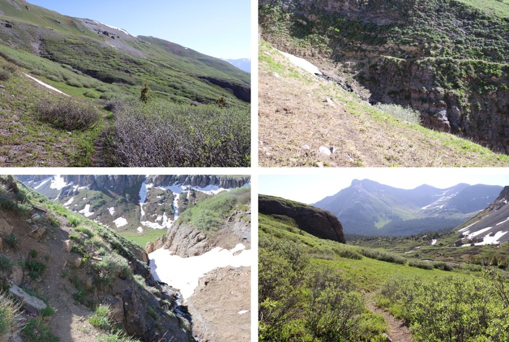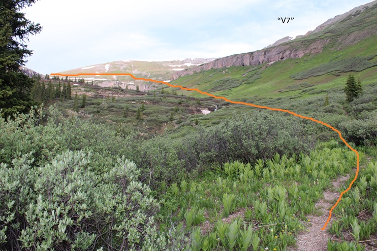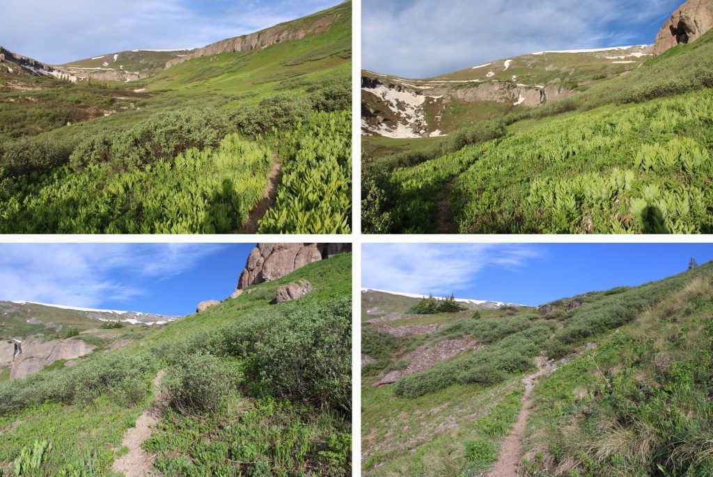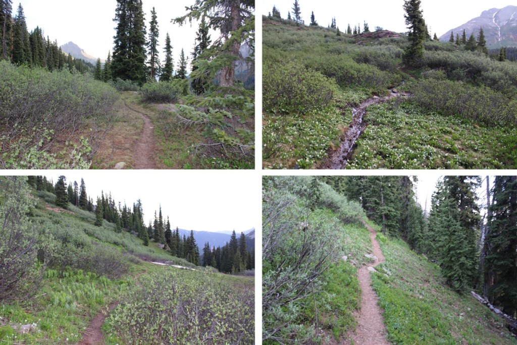 I picked up the trail again, and followed it down the basin, sticking to the left side of the basin/creek.