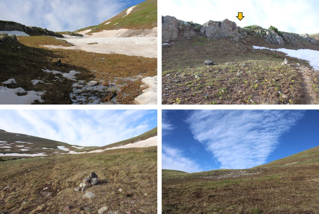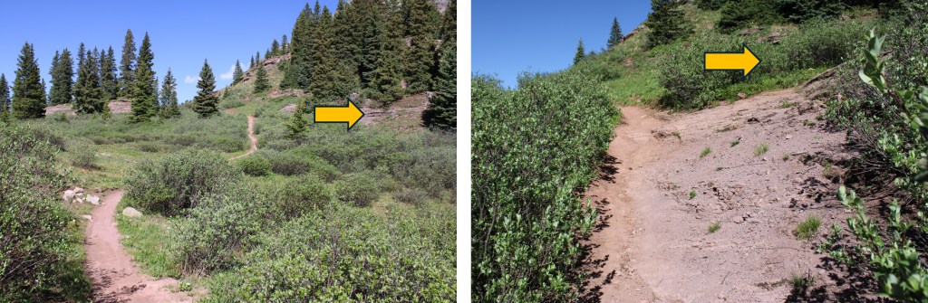After hiking for just under 3.5 miles I found myself at the base of PT 12,864. The Colorado Trail continues to the left, but if you look closely, at the top of the rock formation here there is also a trail to the right. I left the Colorado Trail and took the trail to the right.