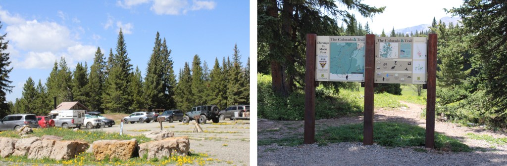 I started at the Colorado Trail Segment 25 Trailhead near Little Molas Lake. There are several dispersed campsites here, public restrooms (although the women’s side was closed for the season), and tons of parking.