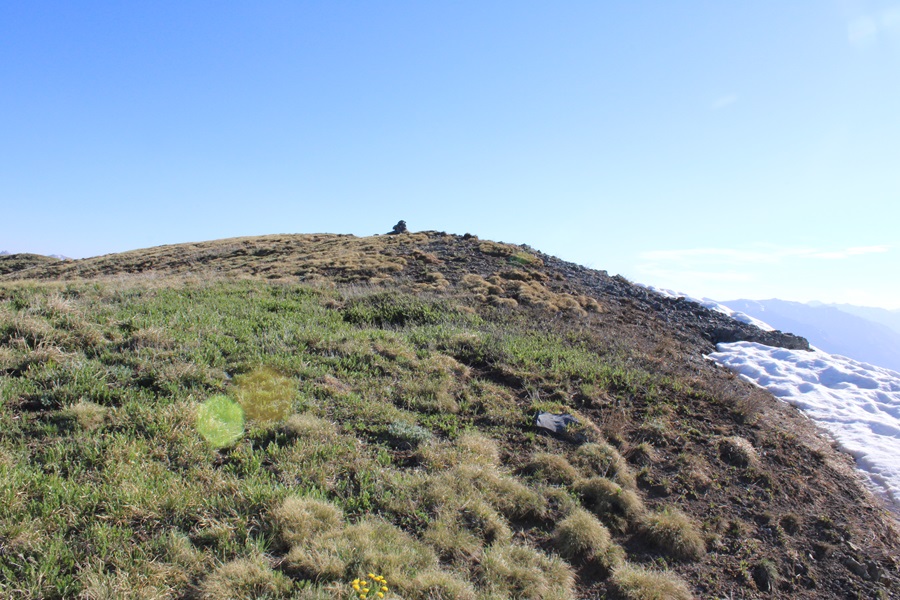 At the saddle I turned left, and headed northeast, following the cairns back to the trail