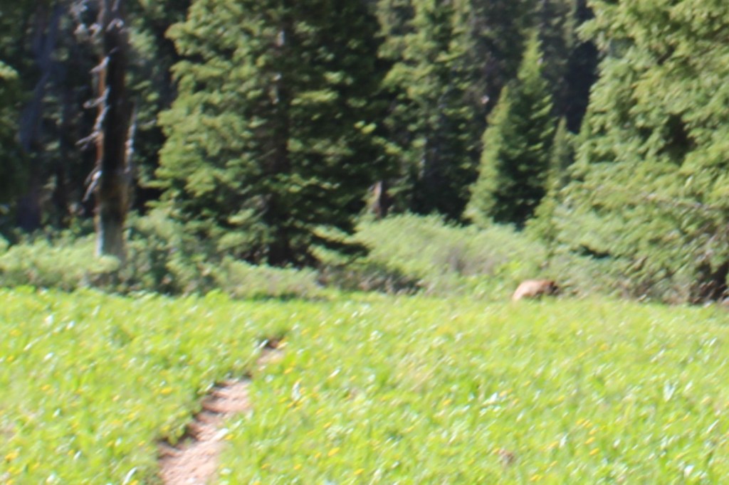 I’d seen quite a few deer that morning. Mostly from afar, but deer nonetheless. As I was nearing the camping area near the base of the basin I saw one running towards me in a funny way, and realized quickly it wasn’t a deer, but a bear. As soon as the bear noticed me, it jumped 90 degrees, and started running the other way. I kind of got a picture, but it’s fuzzy, as the bear was quick.