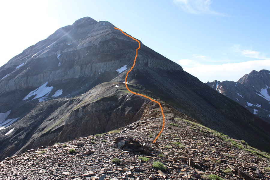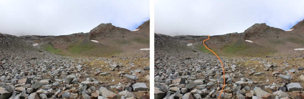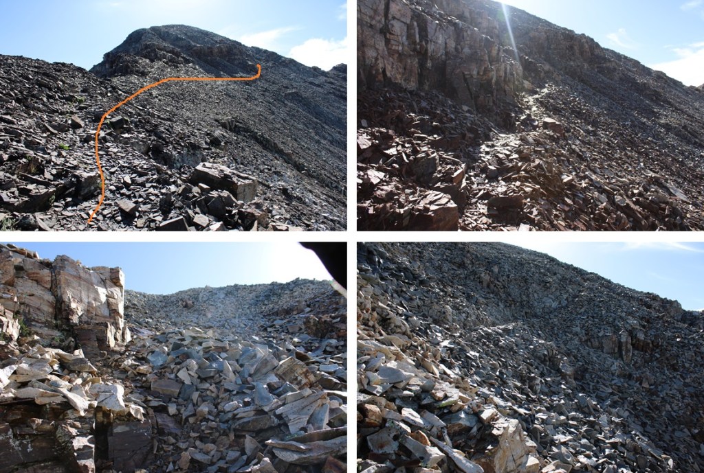 This is choose your own adventure, and none of it was pleasant. It was full of loose, rolling rocks. This is the route I took to gain the ridge.