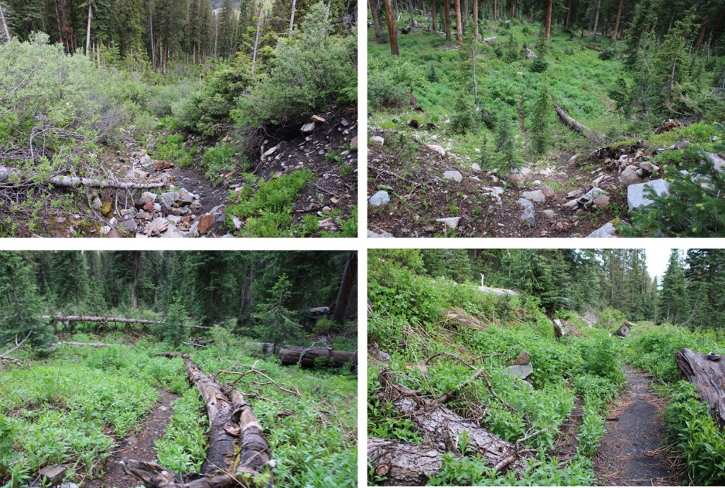 Hearing mixed reviews about how to climb this peak, I decided to take the ridge up, and the gully down. This meant descending about 600 feet and 2 miles from the upper trailhead to my turnoff point. I just kept following the West Mancos Trail. There were plenty of signs along the way to remind me I was still on the West Mancos Trail.