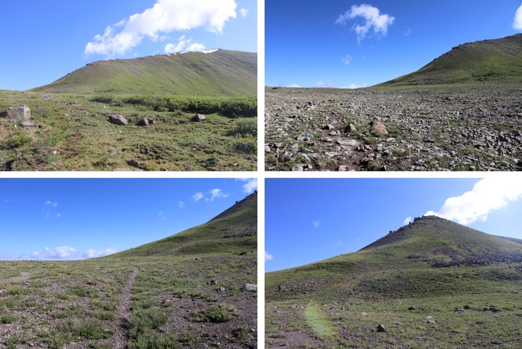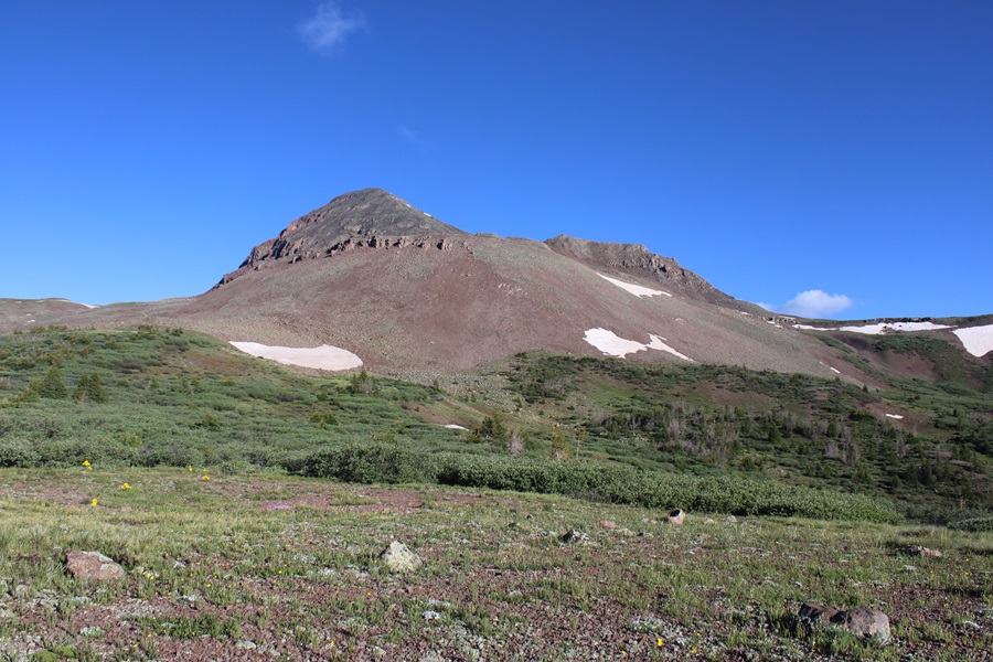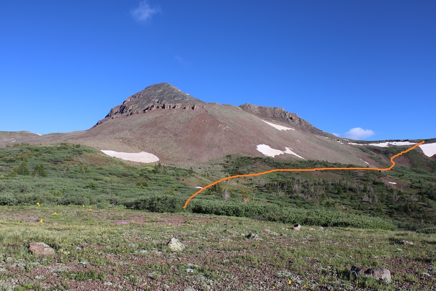 As you can imagine, it was an easy class 2 tundra walk to the top, with some rocks thrown in. Here’s the overall route I took, heading straight for the ridge and then climbing the ridge to the summit: