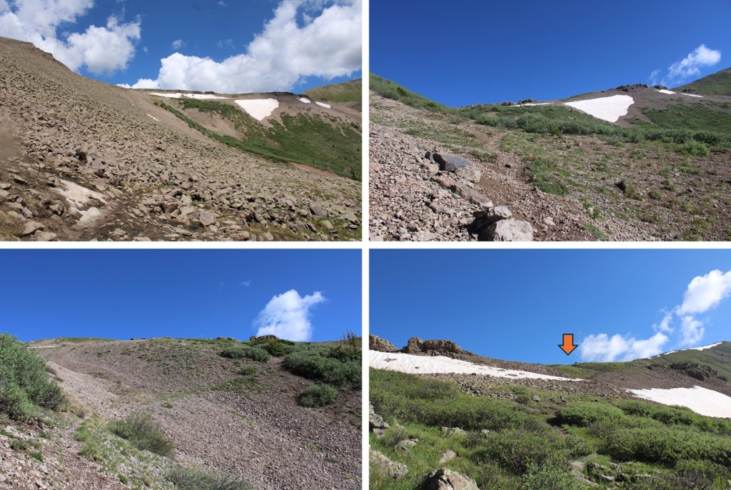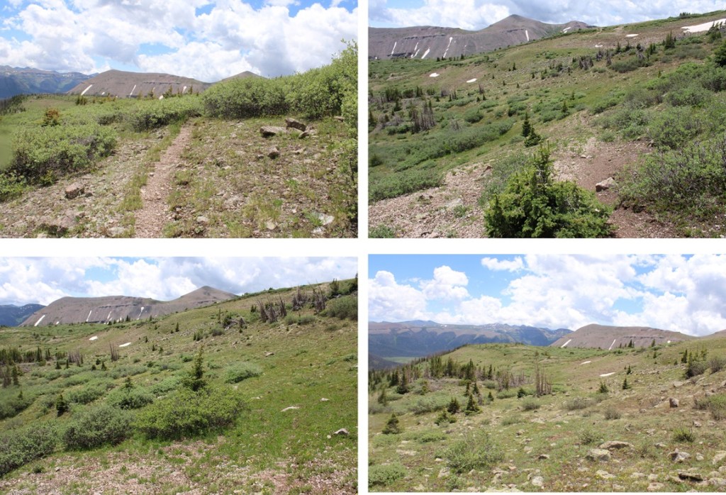 There is a point where you have the option to go east through the willows, or north on the gravel. It’s a difficult junction to see, but if you see it, go north (it’s the way you’ll want to go anyways, because it’s a more defined trail. Here are some pictures of the route to the saddle