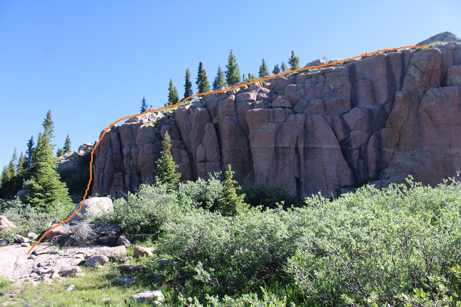 After going east around the large rock face, again head northeast along the ridge. You’ll encounter another large rock face. This time, go right, and ascend a grassy gully.