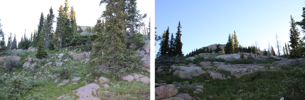 After crossing the stream I headed northeast towards the ridge and the rocky outcropping. The ridge actually has a lot of route finding, so I’ll do my best to explain how to navigate it. This is all class 2, with route finding below treeline.