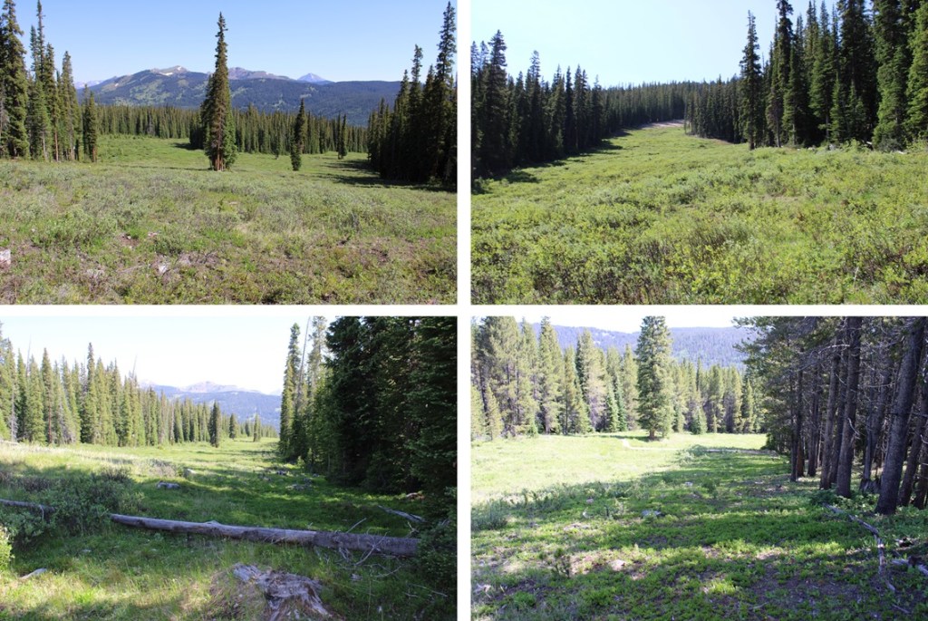 When I came to the Fairway Ski Run, I left the trail, and headed southwest up the run.  For those of you skiers out there, or anyone with a map of the runs, I took Fairway to Roundabout to Soliloquy to the ridge.  There were nice game trails to the hikers left of the runs that I was able to follow to stay out of the willows.  I just kept following the runs up and southeast.  Here are some pictures of the route: