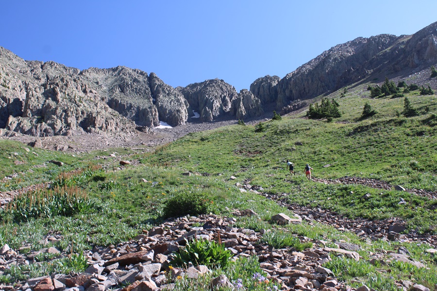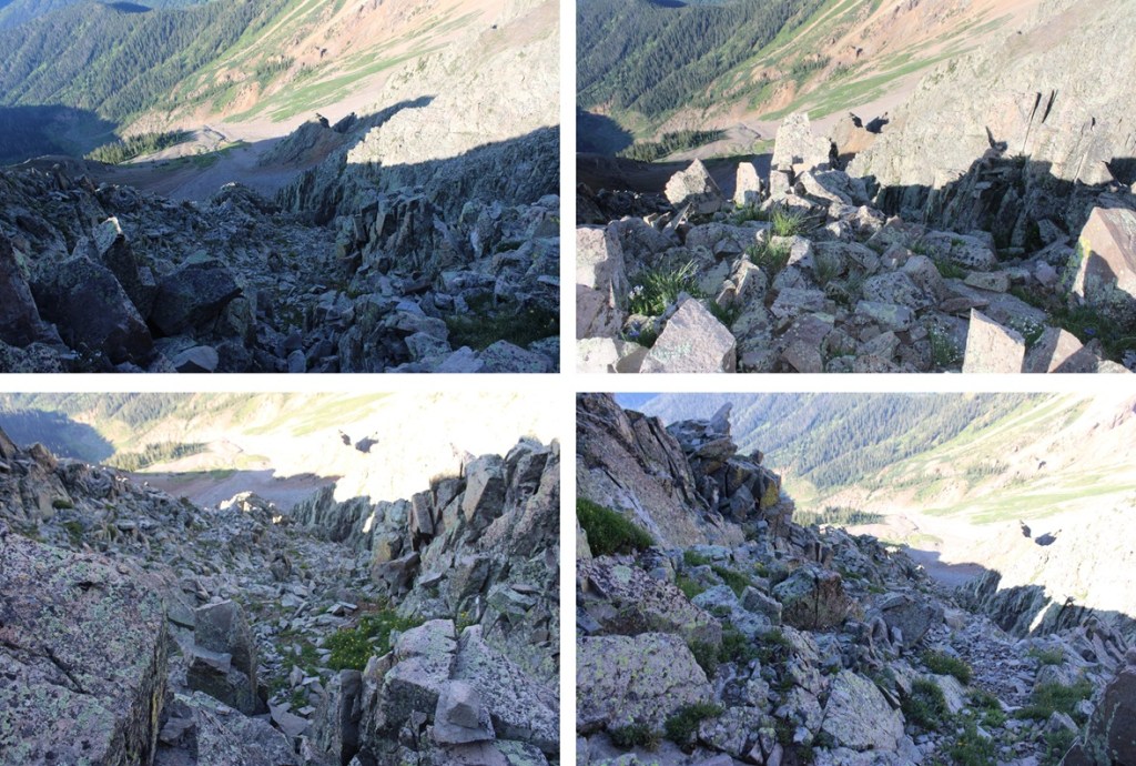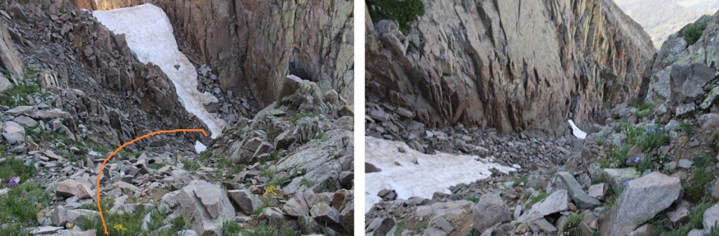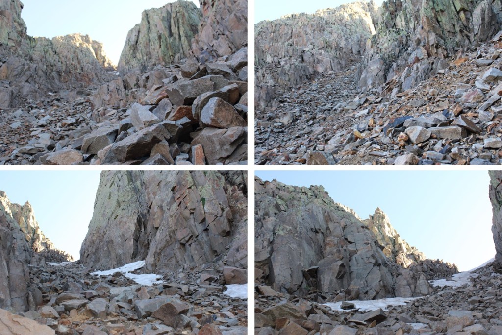 Where the two gullies meet, I turned left and headed down the same gully I’d ascended.