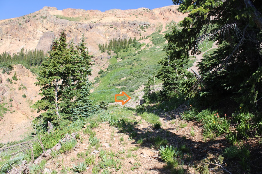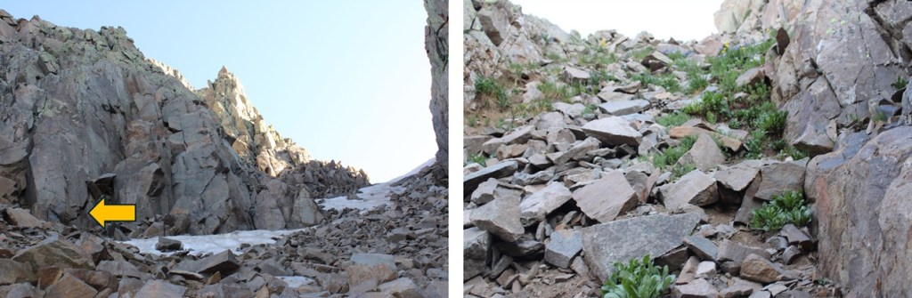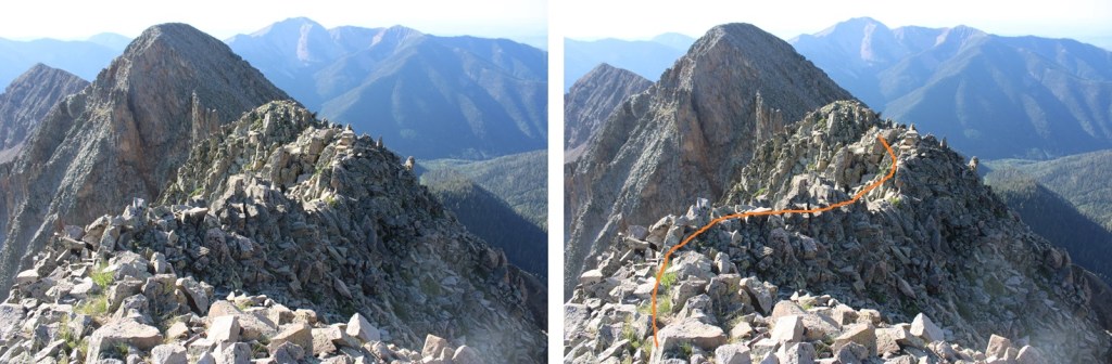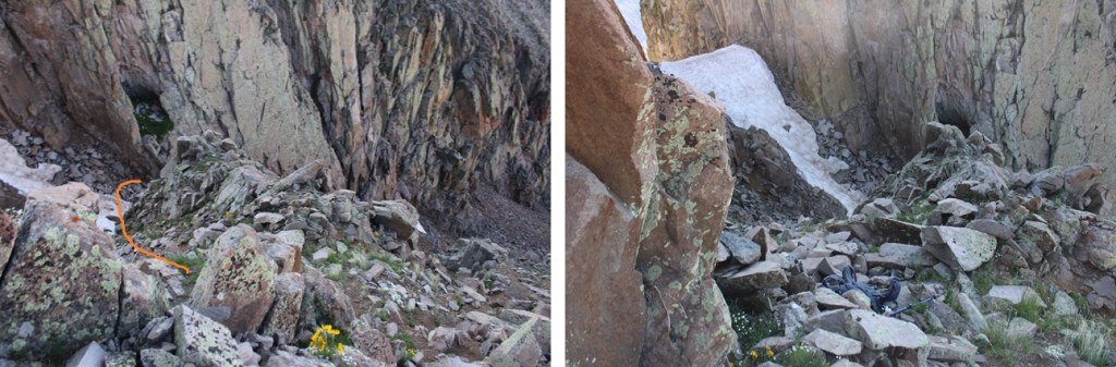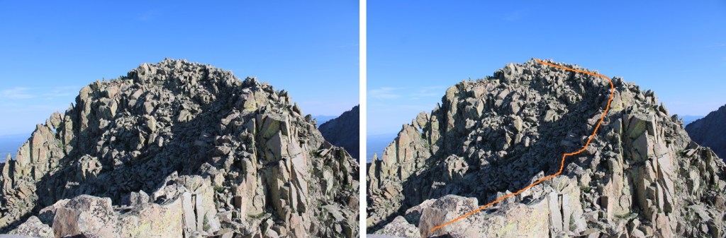 Here’s the tricky move. Go right here to ascend the ridge. It feels like difficult class 3 or easy class 4, with some exposure.