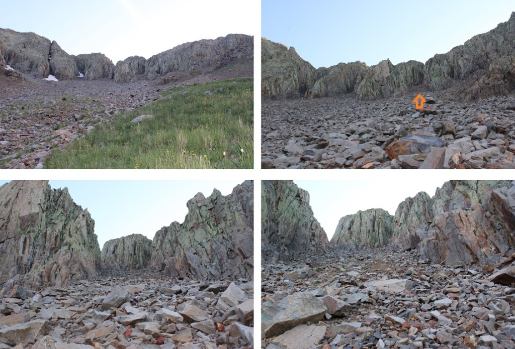 Route finding here was pretty easy. I headed north towards the gully, aiming for the gully to the right. I gained about 1500’ here to the summit in about a mile. This gully is very loose, and full of all different sized rocks. I didn’t stick to one side, but chose whatever route looked best. Here are some pictures of the gully. It’s pretty straightforward.