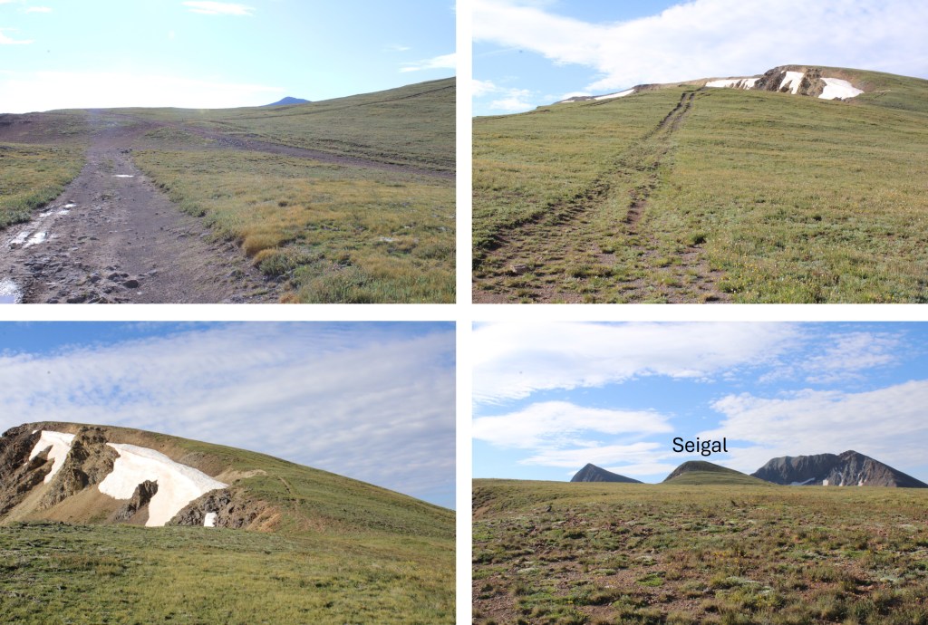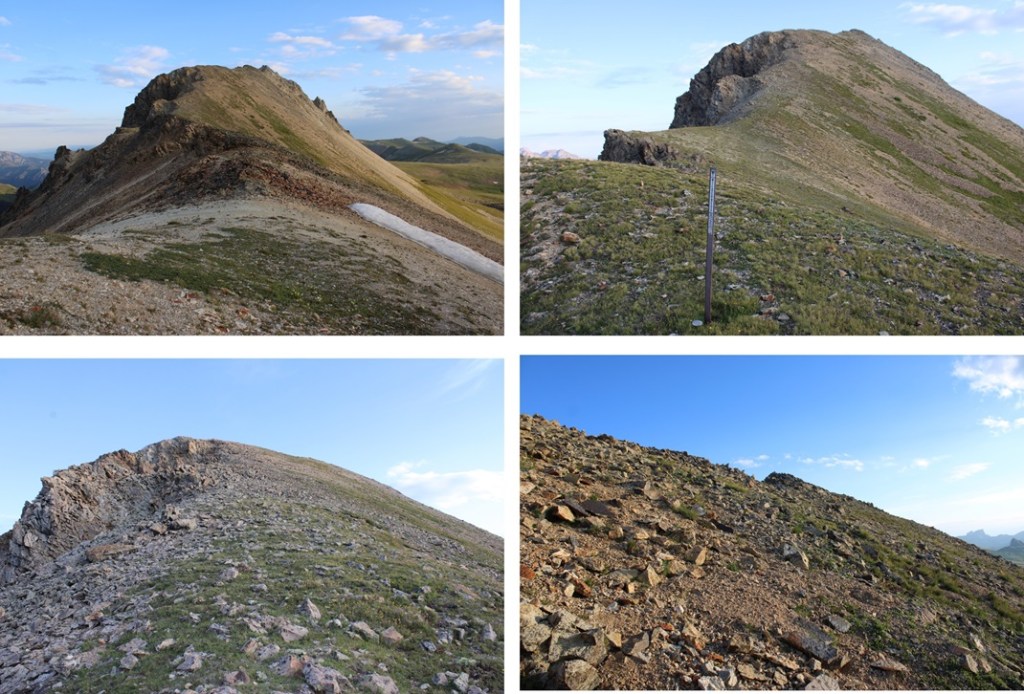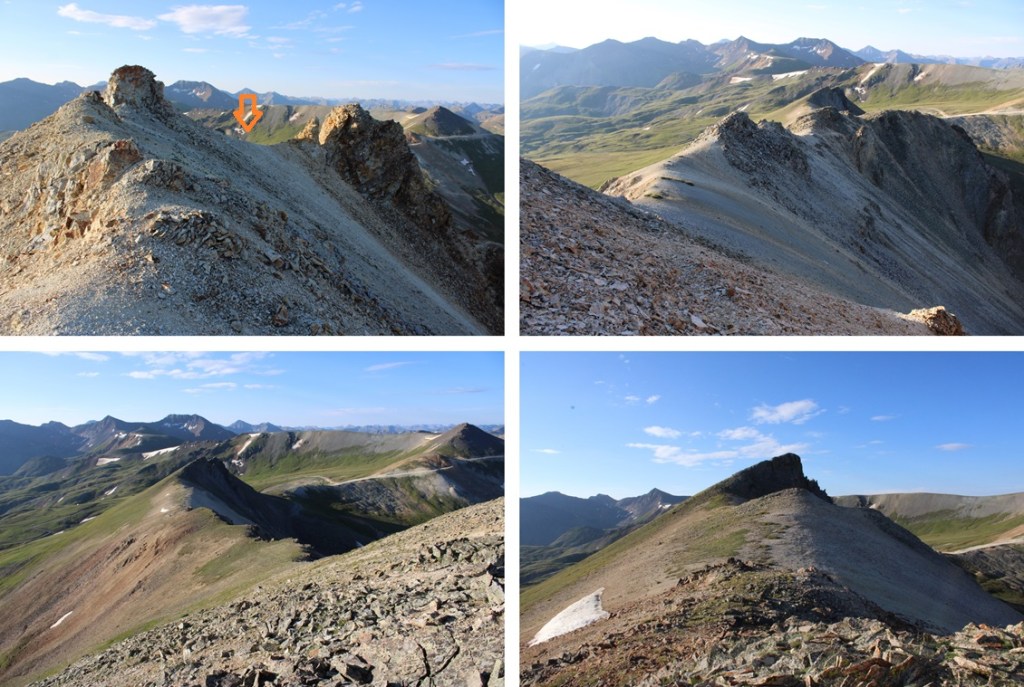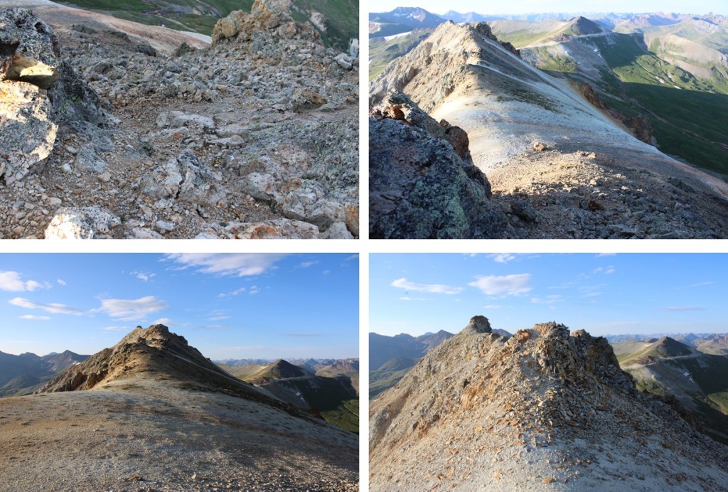 Once at the saddle, I followed the road southwest up the ridge, but eventually the road ended and a slight trail began that ended as well.  It was a class 2 tundra walk to the summit, fairly straightforward.  It got a bit rocky at the very end, still class two, with a tundra workaround to the right. Here are some pictures of the route to the summit of Seigal.