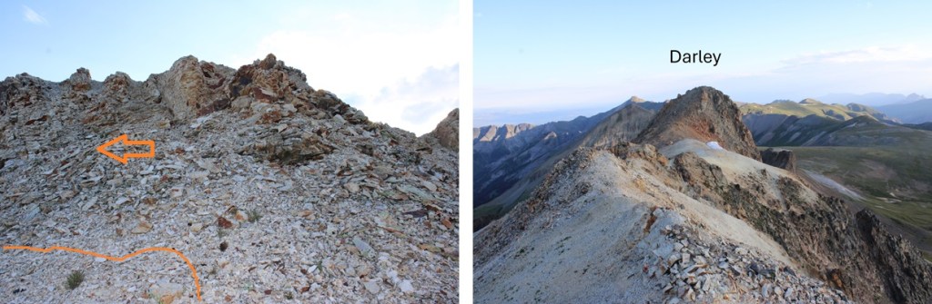 I turned around, and headed back to the Darley/Engineer saddle, using the same route to descend as I had to ascend.