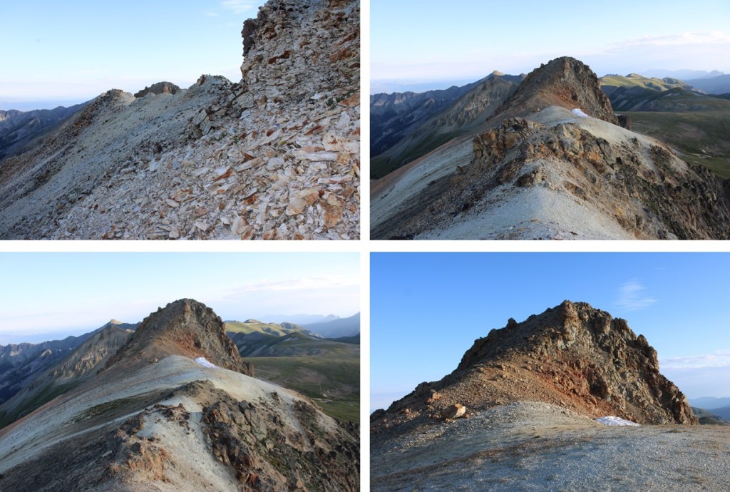My first peak of the day was Darley Mountain.  From Engineer Pass, I turned right, and headed north along the ridge towards Darley.  This was all class 2, but full of loose scree and choss.  Oh, and several false summits.  I stuck to the ridge.  Here are some pictures of the ascent.