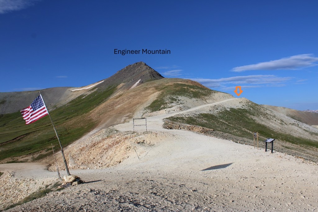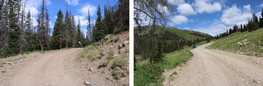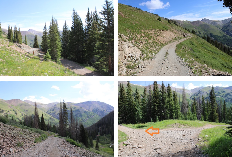 Safely back at Engineer Pass, now I wanted to summit Engineer Mountain.  I continued following the 4WD road southwest, as it continued to ascend in elevation to a junction.