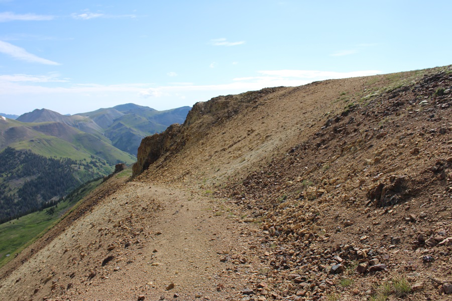 I was up and on the trail at 5:30am.  I began by following the road towards Engineer Pass.  This is a 4WD road, but easy to follow.  From my parking spot, it was about 2.75 miles to Engineer Pass.