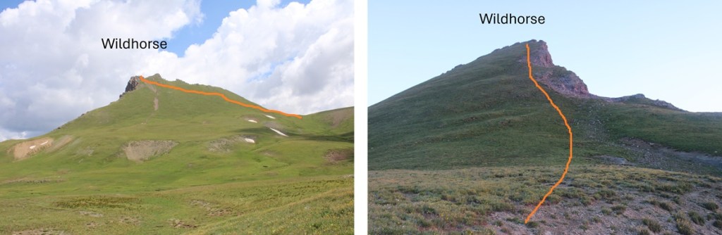 I turned right at the ridge, and aimed for the base of Wildhorse