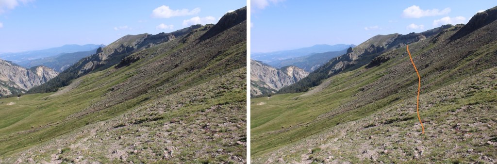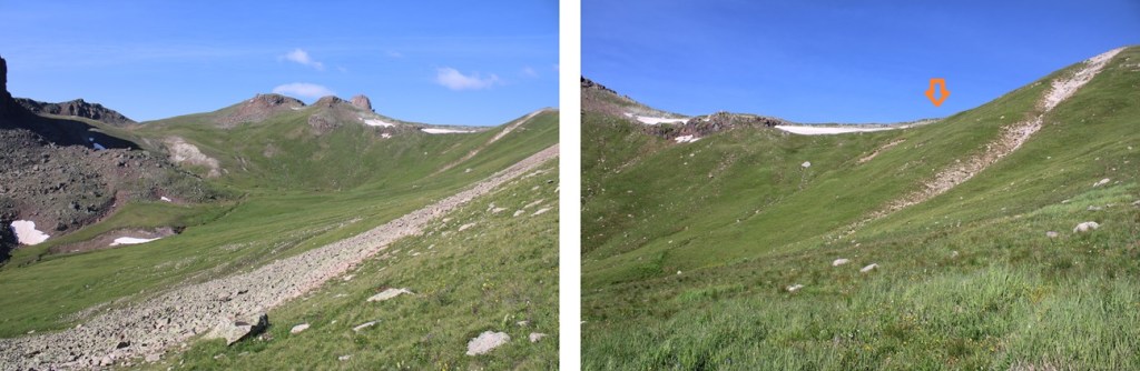 This trail starts out easy to find and easy to follow. I followed this trail for half a mile, until I made it to a gulch just below treeline