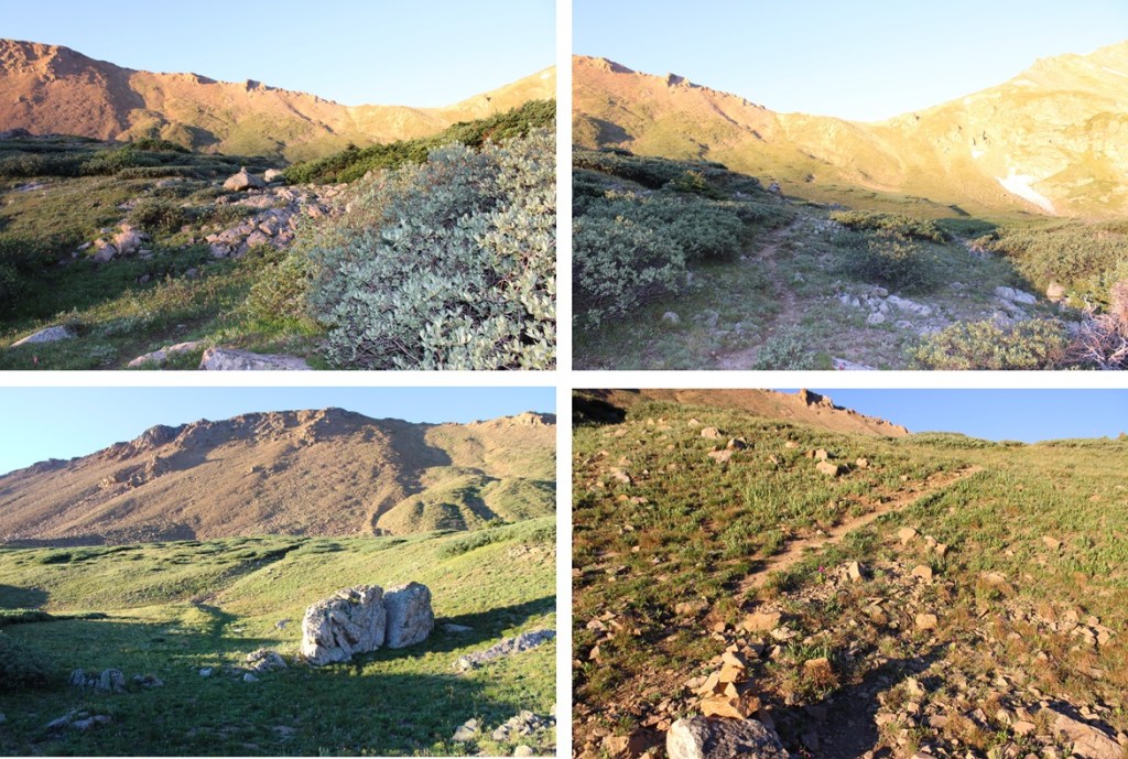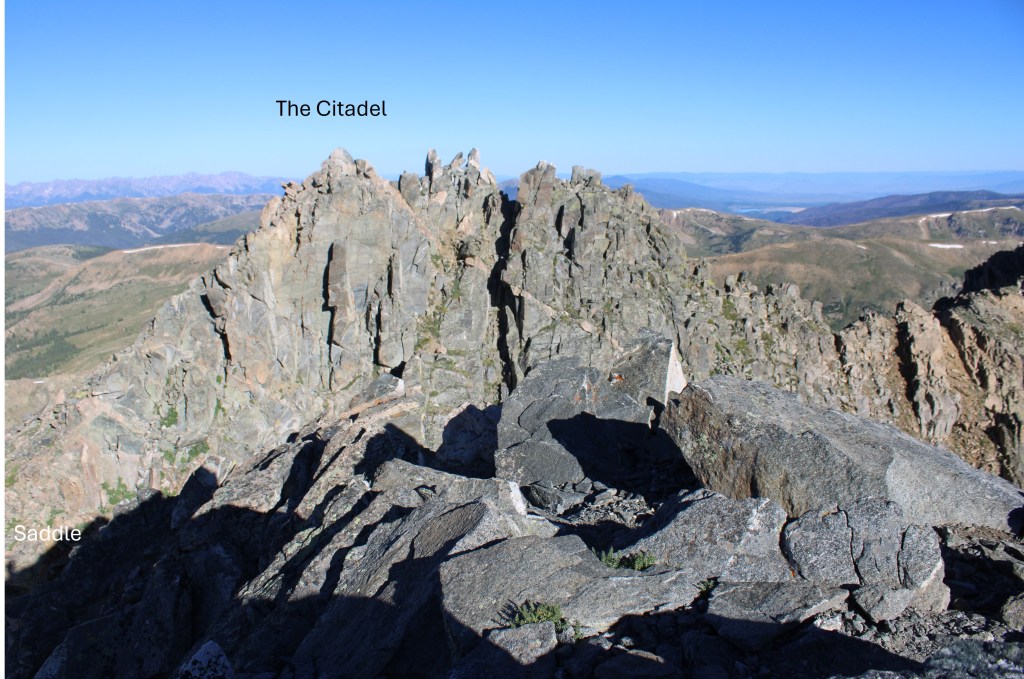I followed this trail as it headed southwest towards the saddle of The Citadel and PT 12671. Here’s where I was heading: