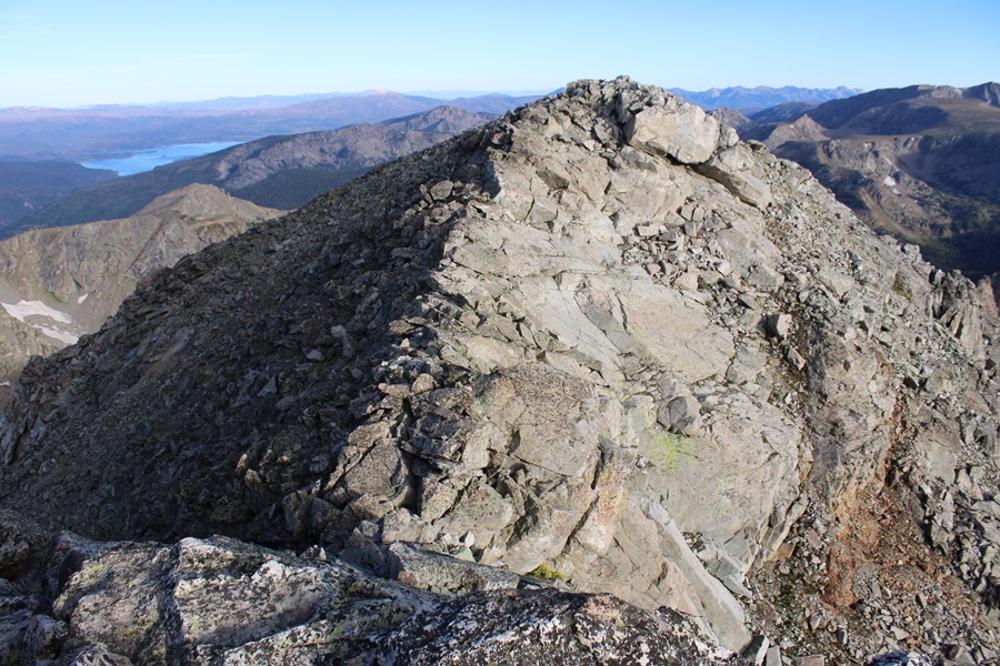 To get there I downclimbed a difficult class 3 section (or easy class 4) with exposure. This was much more difficult to downclimb than to upclimb. And it was very windy this day, making this ridge extra spicy. The route down and then up to the summit are obvious. There was a cairn at the top, and a summit register.