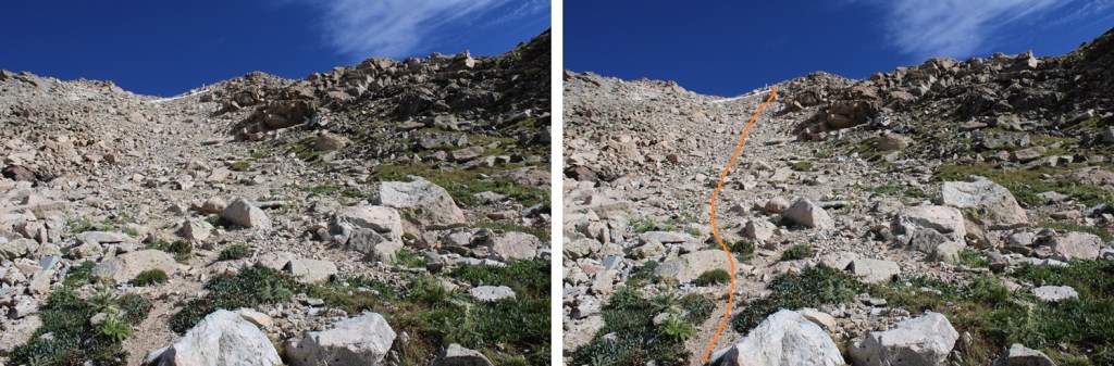 At the top of the rock rib, you’ll see what appears to be the summit of Paiute Peak to the north. It’s actually a false summit, but aim for it.