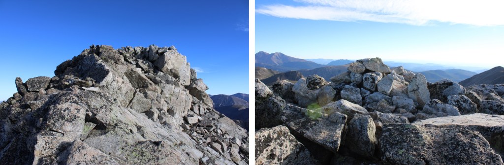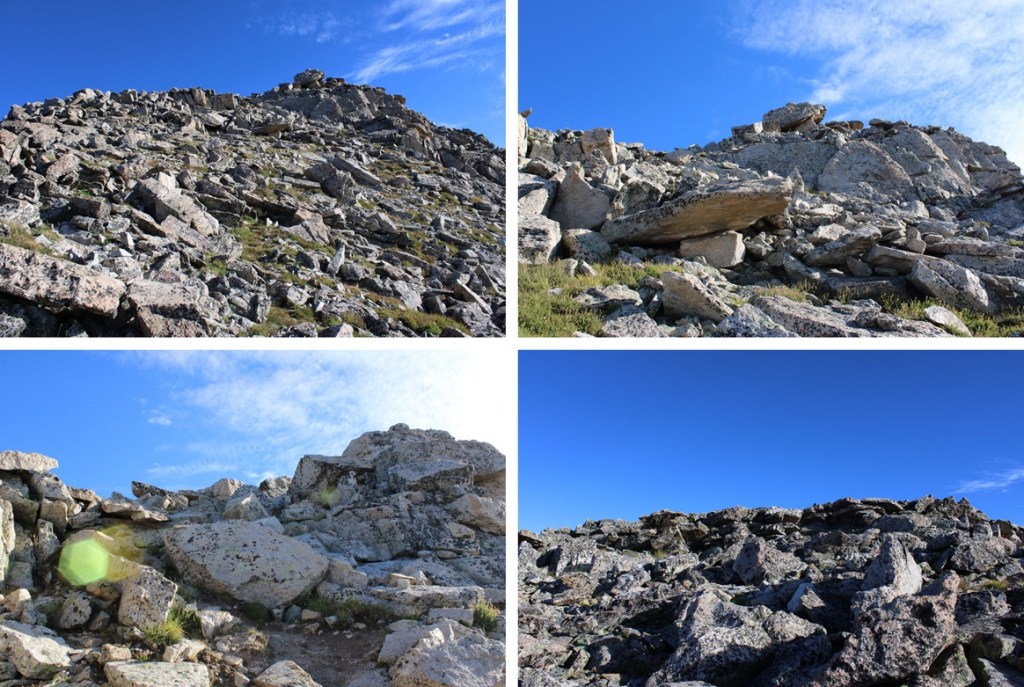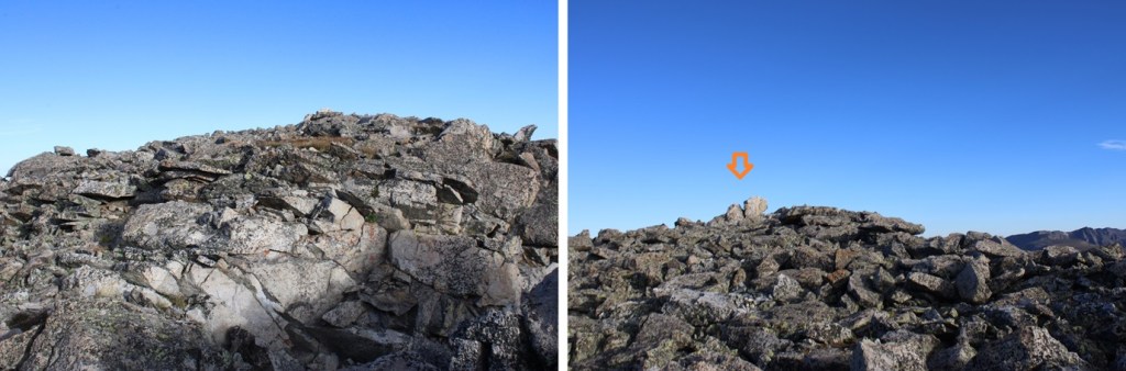 From here, the true summit is to the northeast. Head towards two boulders that look like the summit (they’re another false summit)