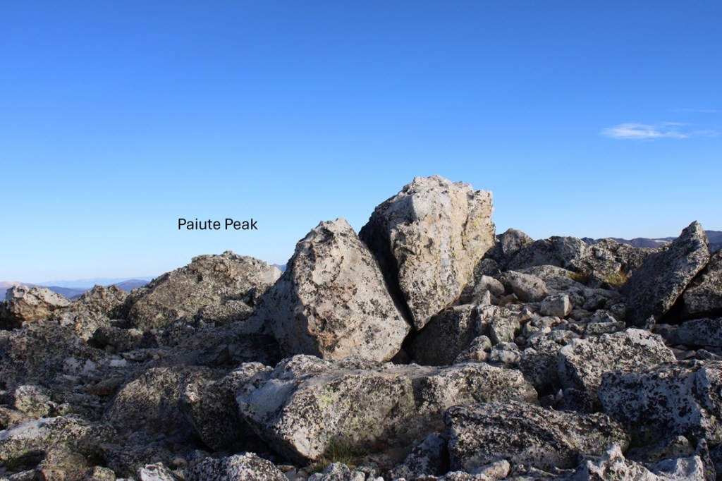 From those two boulders, the summit of Paiute Peak is visible to the north.