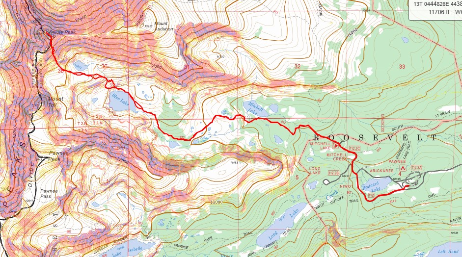 I made it back to the Brainard Lakes trailhead at 10:30am, making this an 11.32 mile hike with 2781’ of elevation gain in 6 hours.