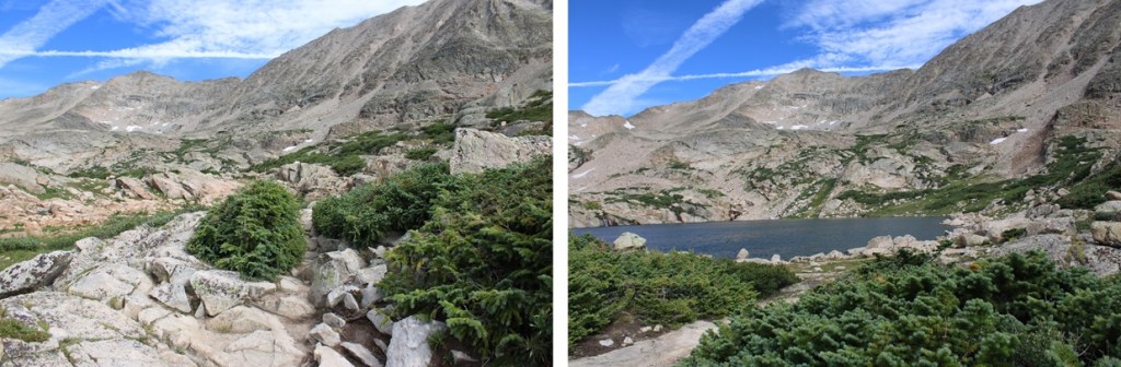Back on the trail, I followed it east back to the Mitchell Lake Trailhead, passing several lakes along the way.