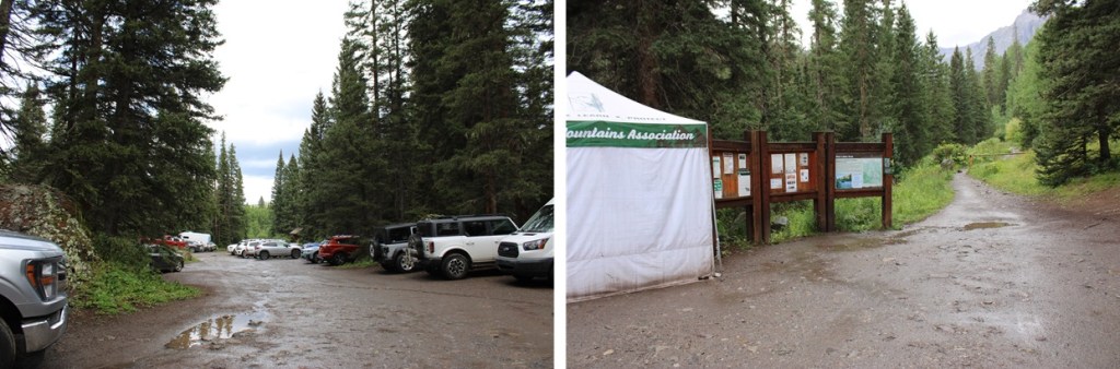 There were only two other vehicles in the lot when I parked at the Blue Lakes Trailhead. It was raining, so I waited for the rain to stop, and was on the trail at 5am. The trailhead starts at the south end of the parking area, and is clearly marked.