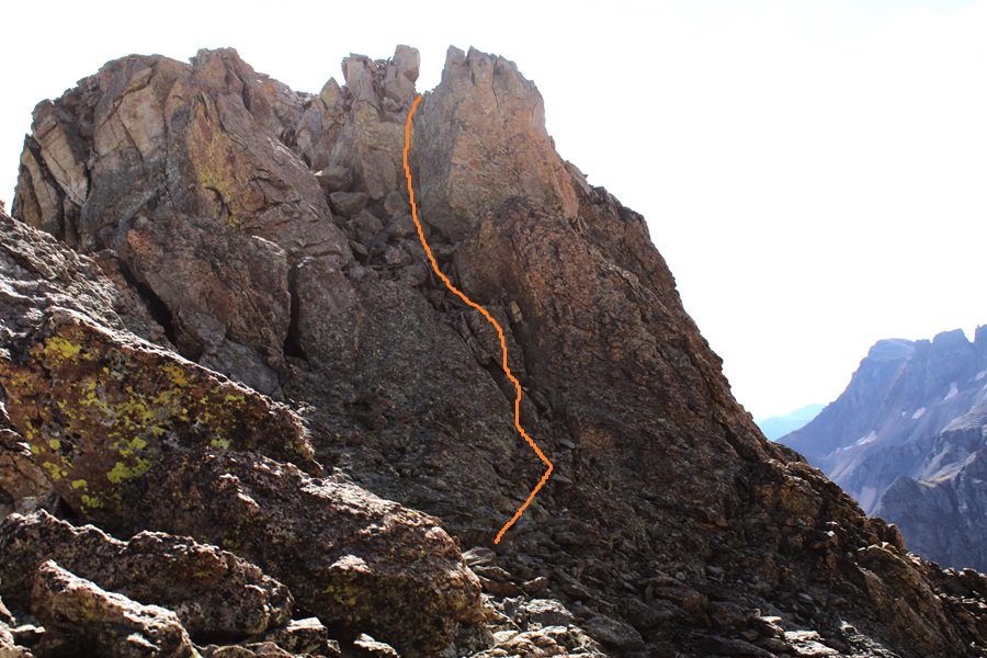 From the top of the second chimney to the east you can see the route you scramble up to the summit
