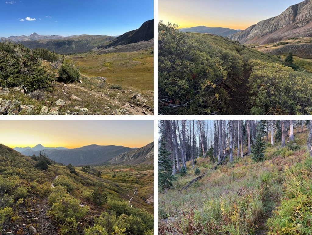I was up and on the trail at 6:30am, startling a small herd of elk as I opened up my tent. I continued following the CDT east, down towards West Ute Lake. I lost about 700’ of elevation as I headed back down to treeline. This is an easy to follow, class 1 trail.