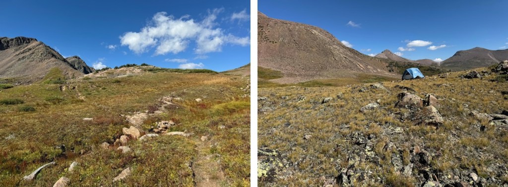 I made it back to treeline, then gained 725’ of elevation back to my campsite at 12500’