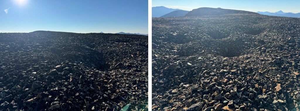 At the top is a wide, flat expanse, full of holes about 5 feet wide.  I kept heading east, towards the summit.