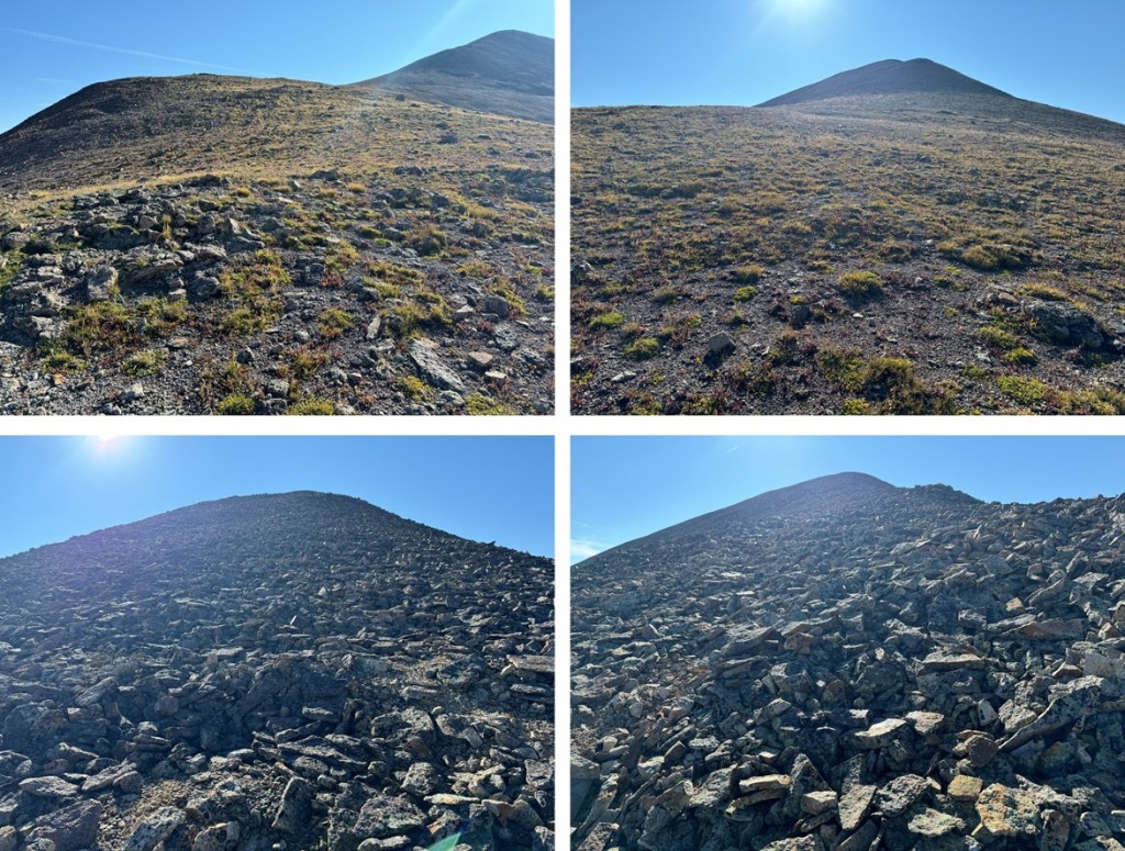 Once on the ridge, I turned left and headed southeast up the ridge.  This is where the terrain changed to small talus.  It was very loose.  The further you climb, the steeper and looser it will be, but you might encounter a game trail to follow.