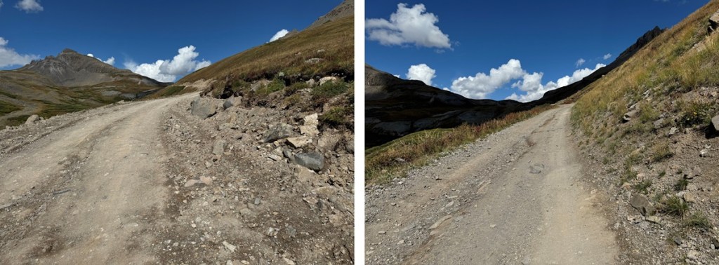 However, when I got back to the tundra mesa, instead of heading back towards the CDT, I turned left and headed towards Stony Pass.  I could see the road in the distance, and was able to hike down the entire slope on tundra (except for a brief rocky section where I took a game trail), avoiding the willows.