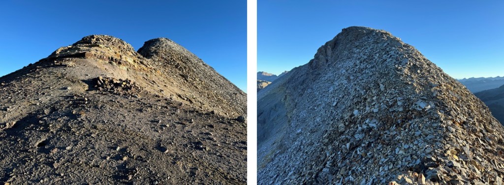 At the saddle, I headed straight up the ridge to the summit (also on very loose shale).