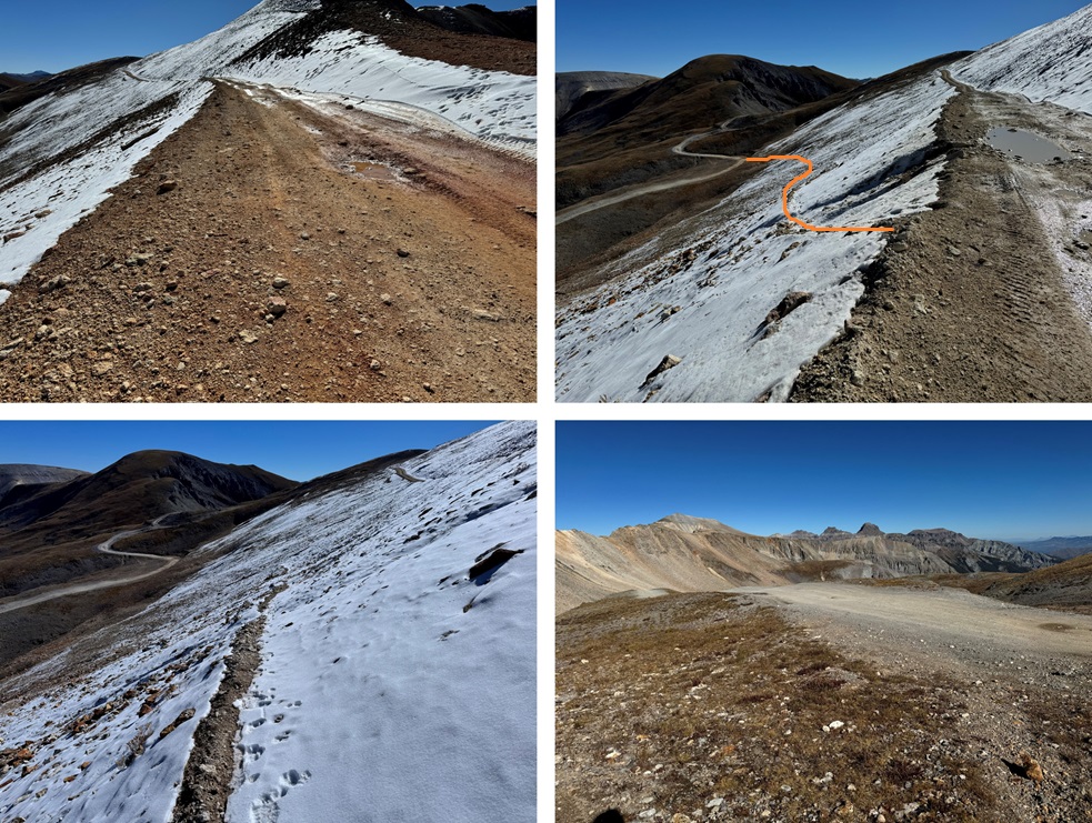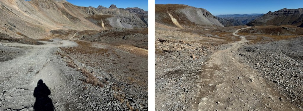 Just before the final switchback to Imogene Pass I bypassed the road and took a game trail to the right, which led me back to the road and Imogene Pass.