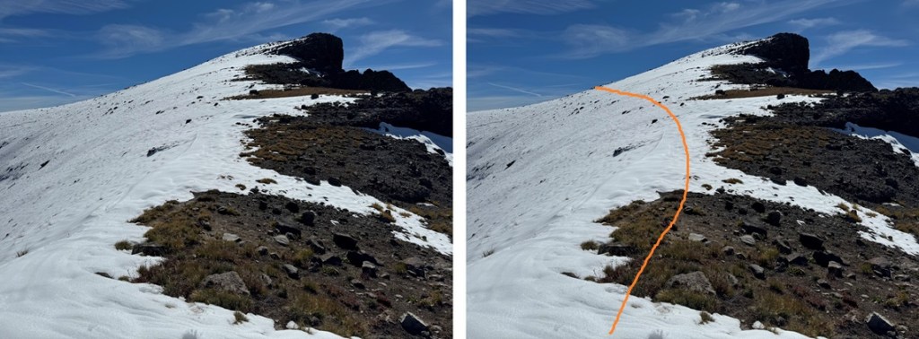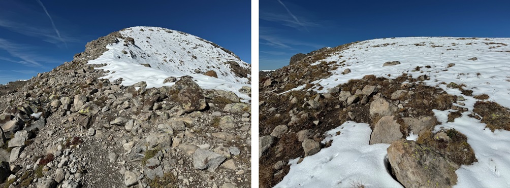 I continued following the ridge as it became rocky. Still class 1 or 2, depending on snow.