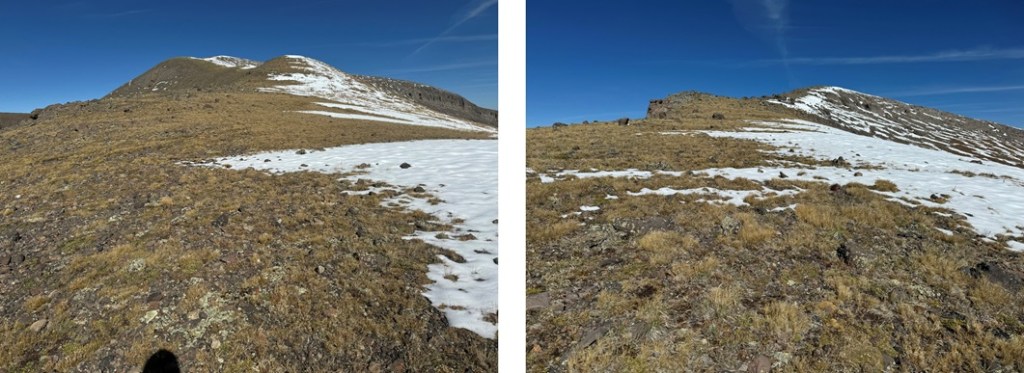 I followed the ridge west on a class 1 trail towards Goat Peak. I’m assuming the entire trail to West Elk Peak is class 1, but there was snow on the rest of the route, so I’m not entirely sure. If anything, it’s easy class 2. The snow was solid in the morning, so the terrain was easy to navigate. Here are some pictures of the ridge to Goat Peak