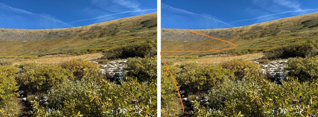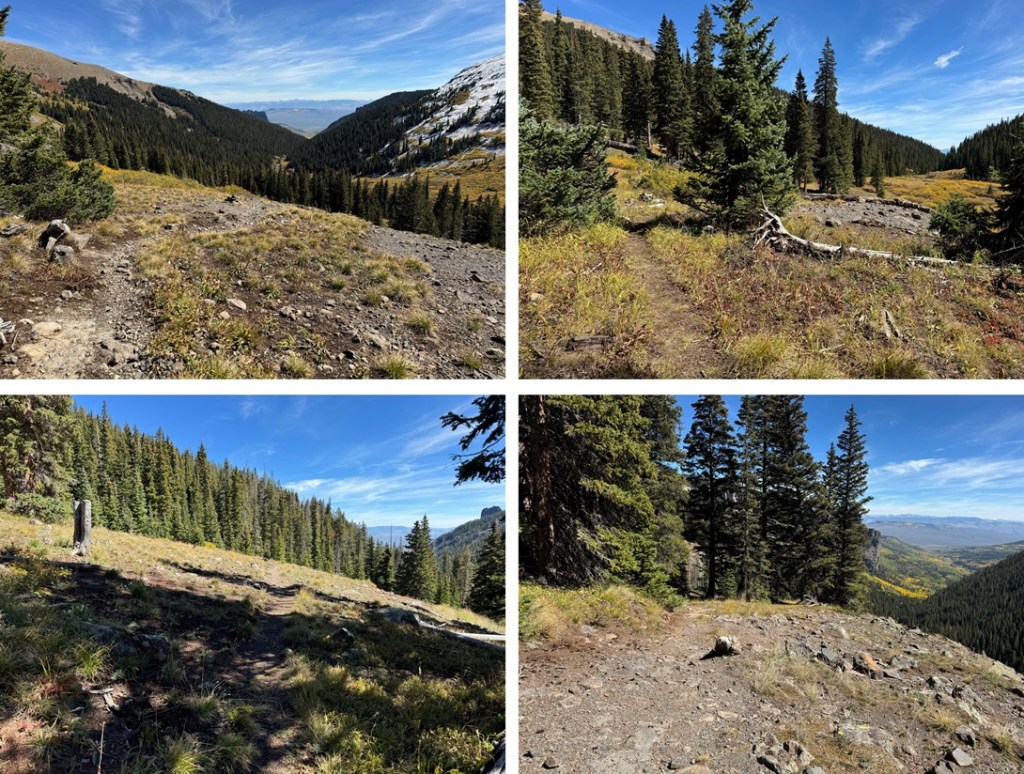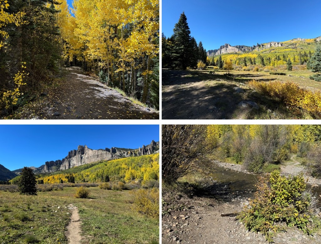 While this trail looks long, it’s actually quite easy. The elevation gain is gentle, and the views are amazing. It looked like fall below treeline, and winter above, which was a neat contrast. I parked at the upper Mill Castle Trailhead. The last mile and a half or so require high clearance, but a 2WD should make it. If not, there’s a parking area below with vault toilets and plenty of parking.