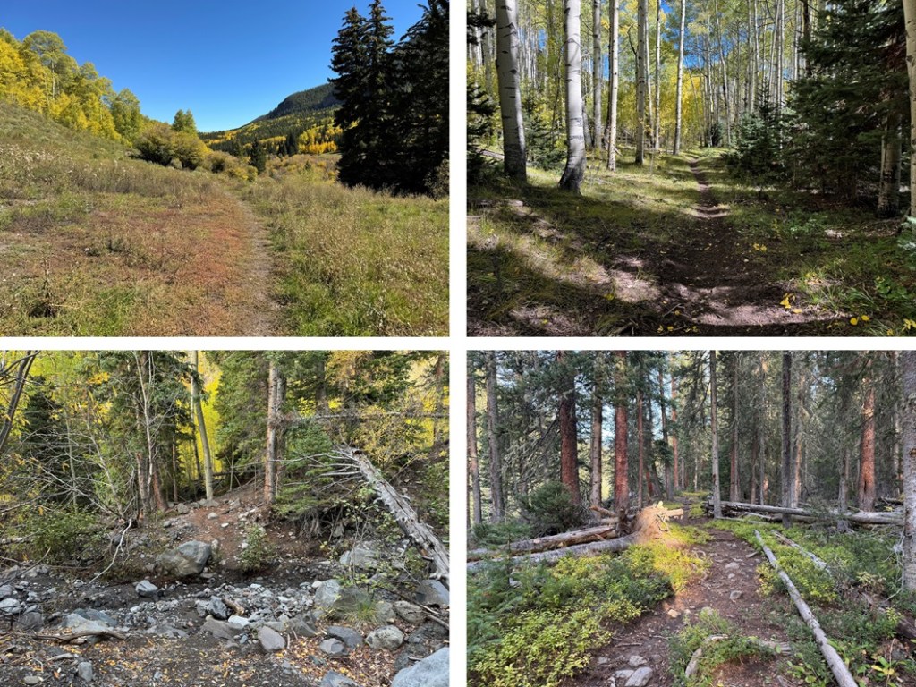 The trail (Mill Castle Trail) starts by going through a gate to what used to be a 4WD road, then changes to a trail. There aren’t any junctions to this trail, so I followed it west as it paralleled Mill Creek. There are several creek crossings, as I was hiking up through a drainage, and runnels were entering into the creek from both sides. It felt as if I was gaining and losing elevation most of the time until I made it to treeline. Every time I’d switchback up a hill, I seemed to head back down for another creek crossing. It was almost 7 miles to treeline. On a positive note, the trail was easy to follow, and it was nice hiking in the trees, listening to the birds and squirrels go about their day.